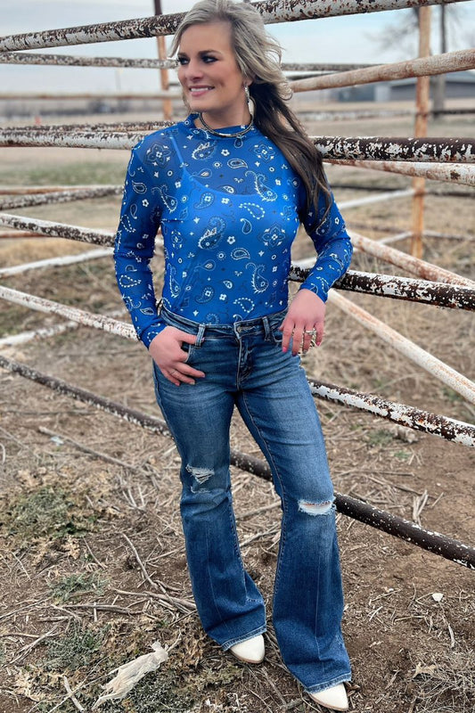 BANDANA BABE MESH TOP BLUE