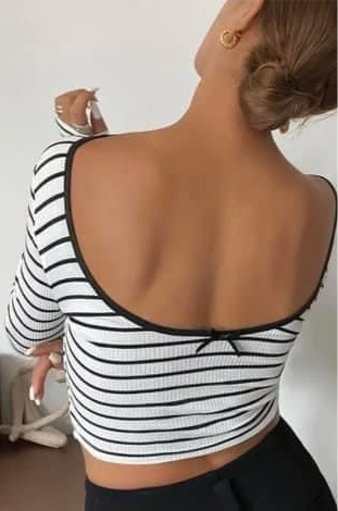 Open Back Striped Bow Top