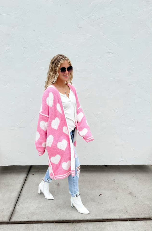 Cloud Heart Cardigan - Pink & White