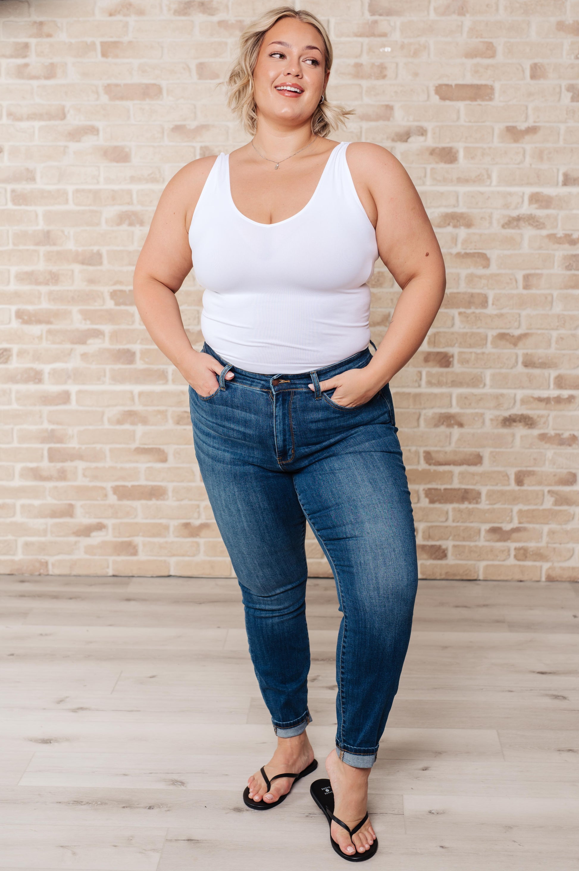 Introducing the Daphne High Rise Skinny Jeans - the perfect blend of style and comfort. With a flattering high rise fit and classic dark wash, these non-distressed jeans are a versatile addition to your wardrobe. Plus, the 4-way stretch ensures a comfortable fit all day long. Don't miss out on these timeless skinny jeans! (No more awkward waist gaps!)