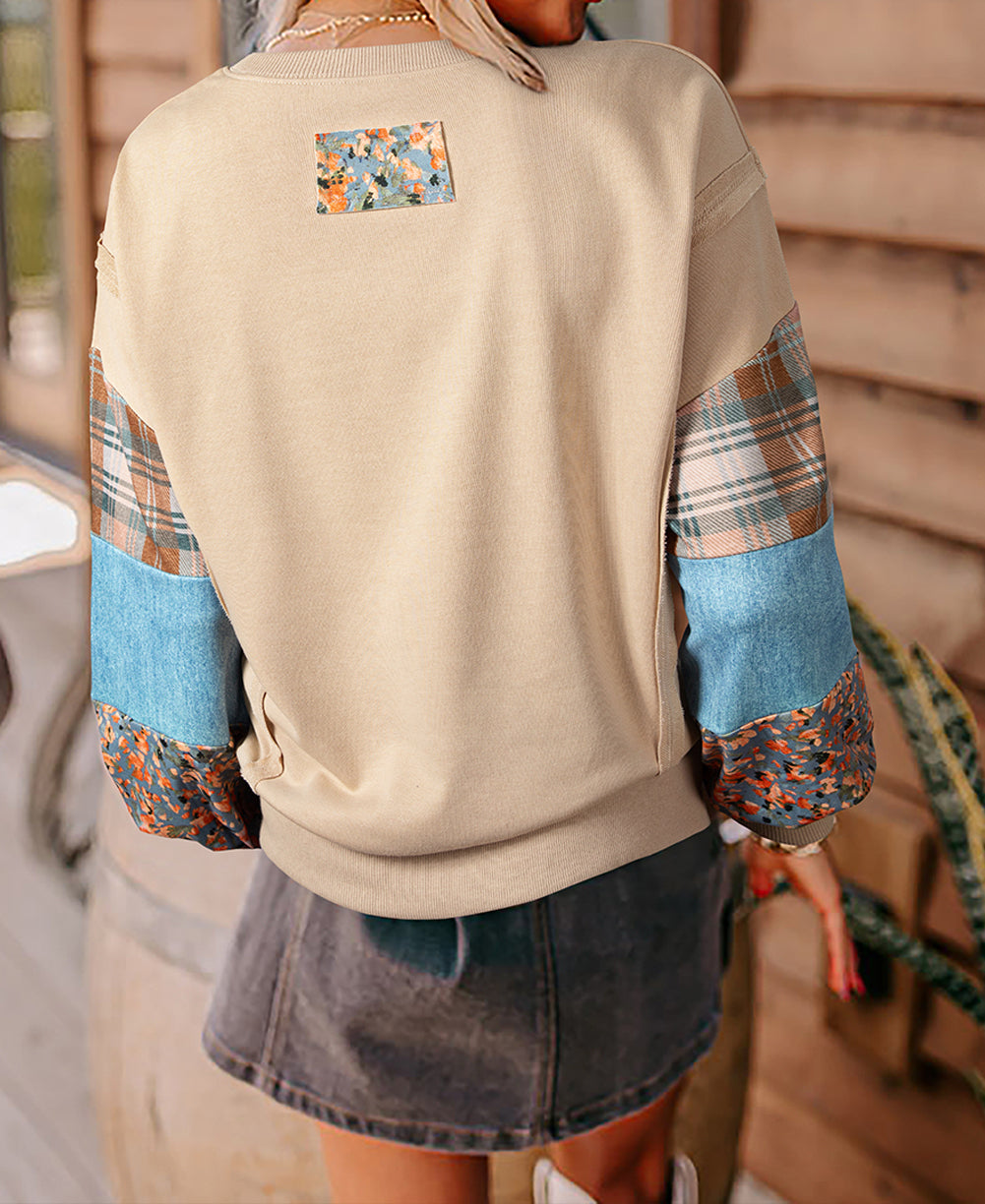 Plaid Patchwork Raw Seam Sweatshirt LT
