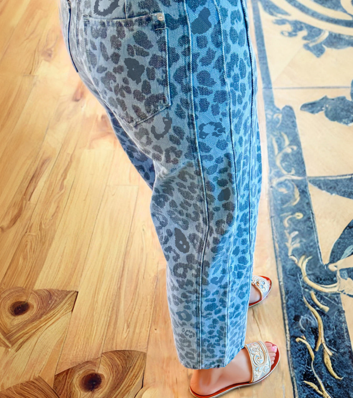 Sky Blue Leopard Straight Jeans RTS